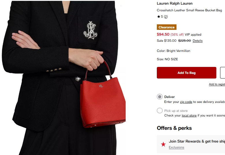 로렌랄프로렌 크로스해치 레더 스몰 리즈 버킷백 $94.50