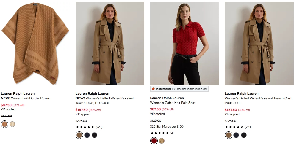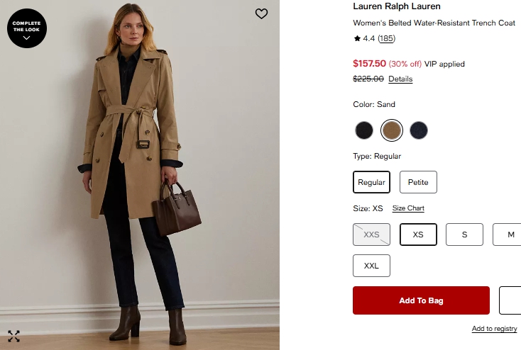 로렌랄프로렌 우먼 벨티드 방수 트렌치코트 $157.50