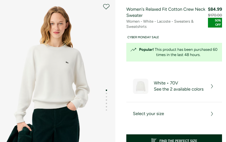 릴렉스핏 코튼 크루넥 스웨터 $84.99
