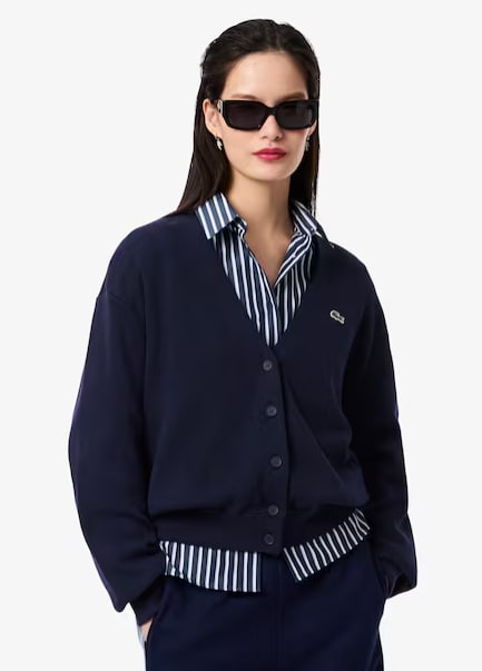 우먼 브이넥 모스 스티치 코튼 가디건 $89.99