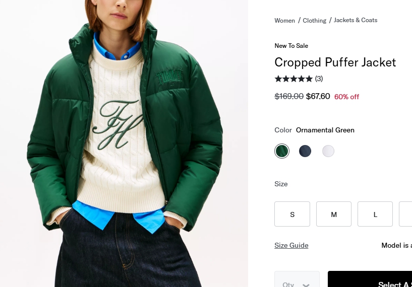 크롭 푸퍼 자켓 $54.08