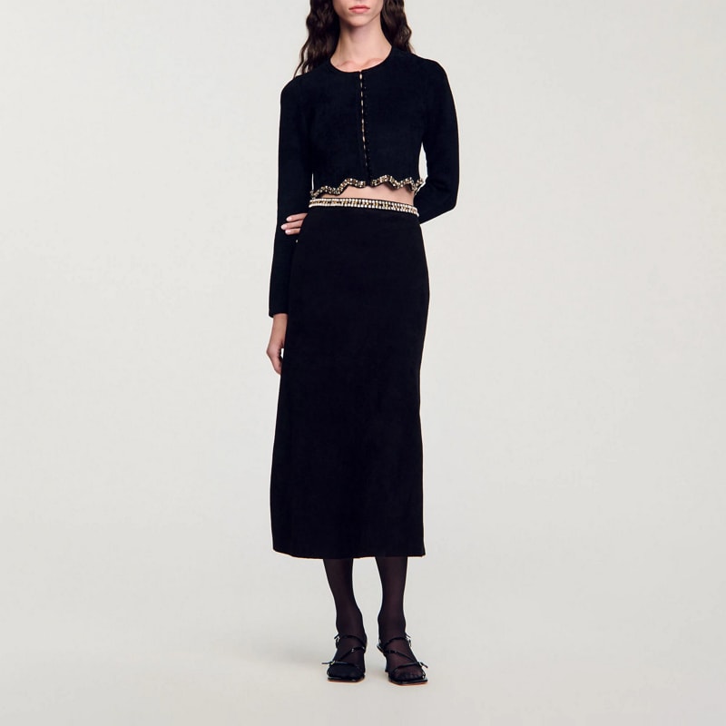 Short rhinestone velvet knit cardie