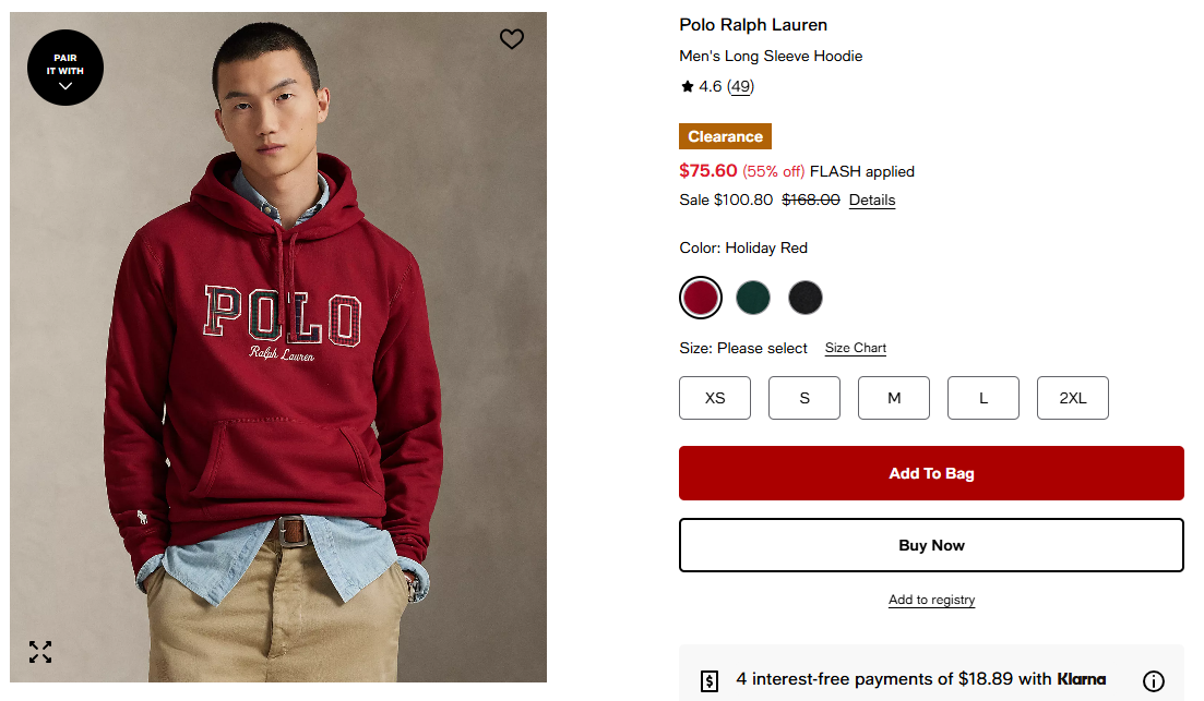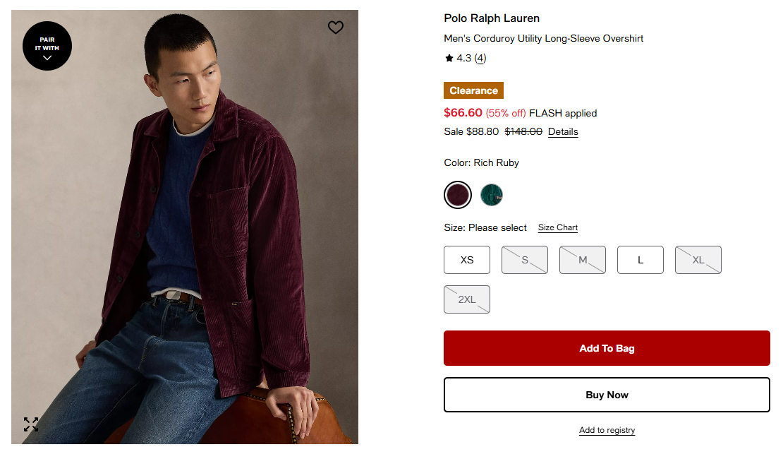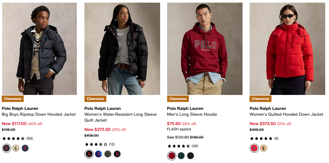 메이시스에서 폴로 랄프 로렌 의류가 할인 중입니다.