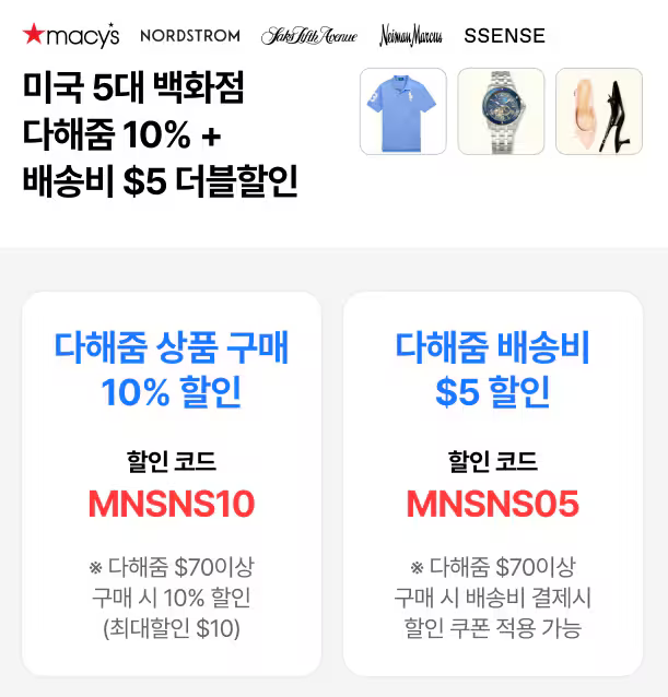 몰테일 통해 구매 시 상품 10%, 배송비 $ 할인까지