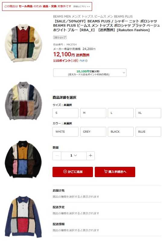 앞면에 서로 다른 6가지 컬러를 배치한, 화려한 색감의 〈BEAMS PLUS〉 니트 폴로 셔츠입니다.