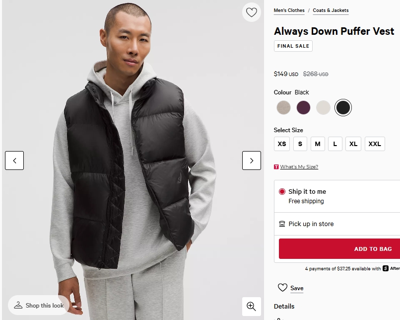 올웨이즈 다운 푸퍼베스트 $14.00