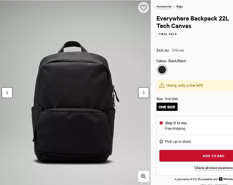에브리웨어 백팩 22L 테크캔버스 $49.00
