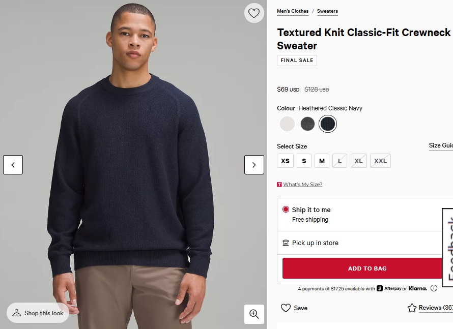텍스처 니트 클래식핏 크루넥 스웨터 $69.00