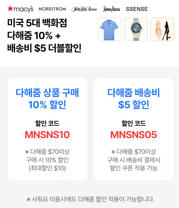 미국에서 직구한 상품에 한하여 일반통관은 $150까지, 목록통관은 $200까지 구매 가능합니다. (초과 시 과세 대상)