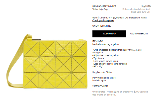 BAO BAO ISSEY MIYAKE Yellow Kaiju Bag $194