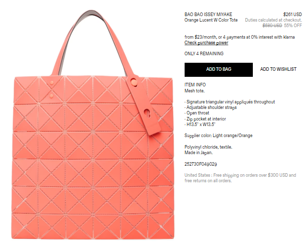 BAO BAO ISSEY MIYAKE Orange Lucent W Color Tote $261