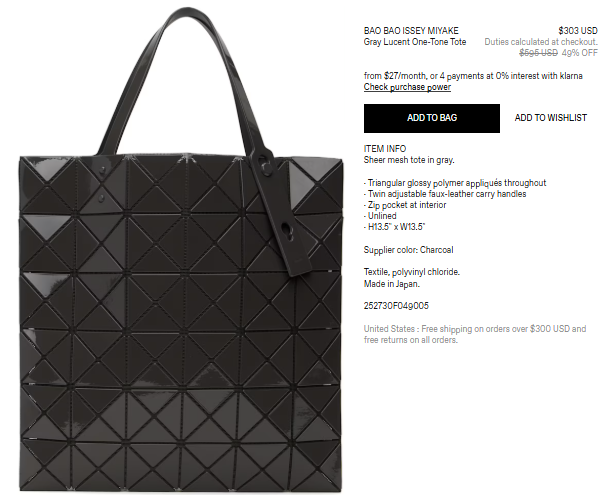 BAO BAO ISSEY MIYAKE Gray Lucent One-Tone Tote $303