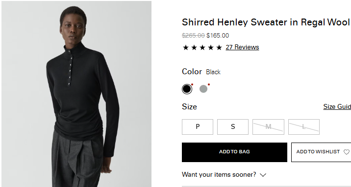 리갈 울 시어드 헨리 스웨터 $165.00