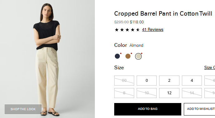 코튼 트윌 크롭 배럴 팬츠 $118.00