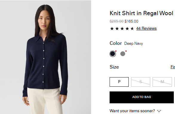리갈 울 니트 셔츠 $165.00