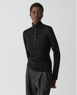 Shirred Henley Sweater in Regal Wool