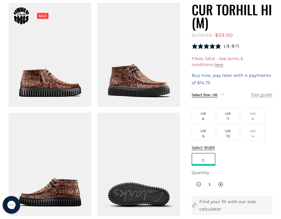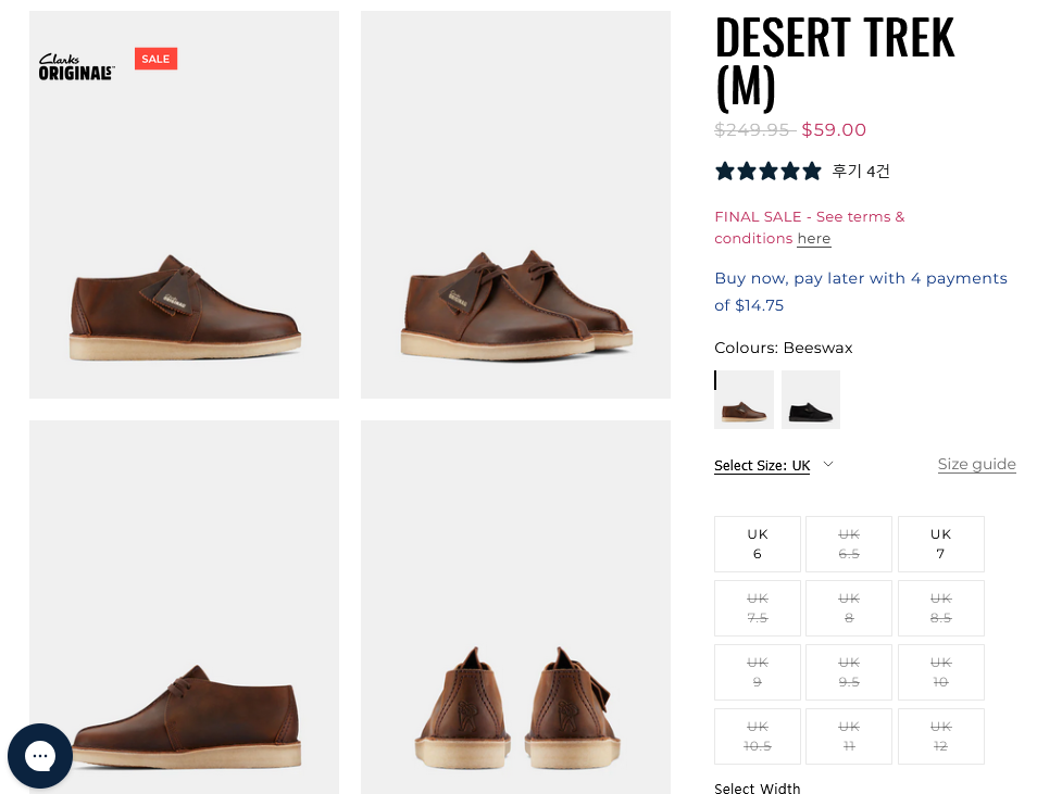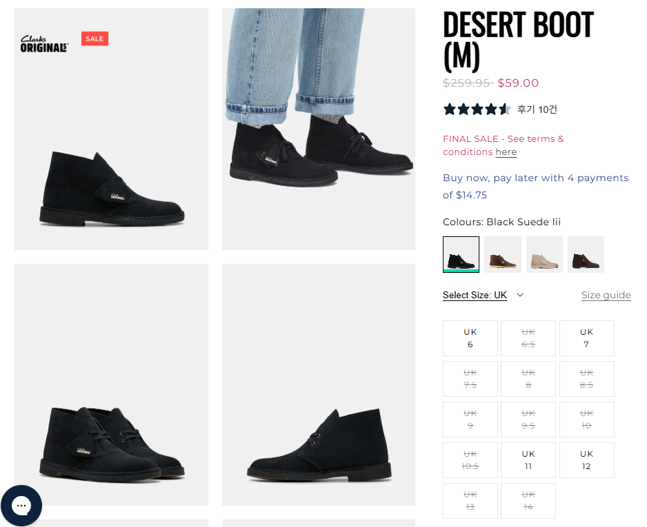 클락스 호주 공식 홈페이지에서 부츠를 세일가에 판매중입니다.