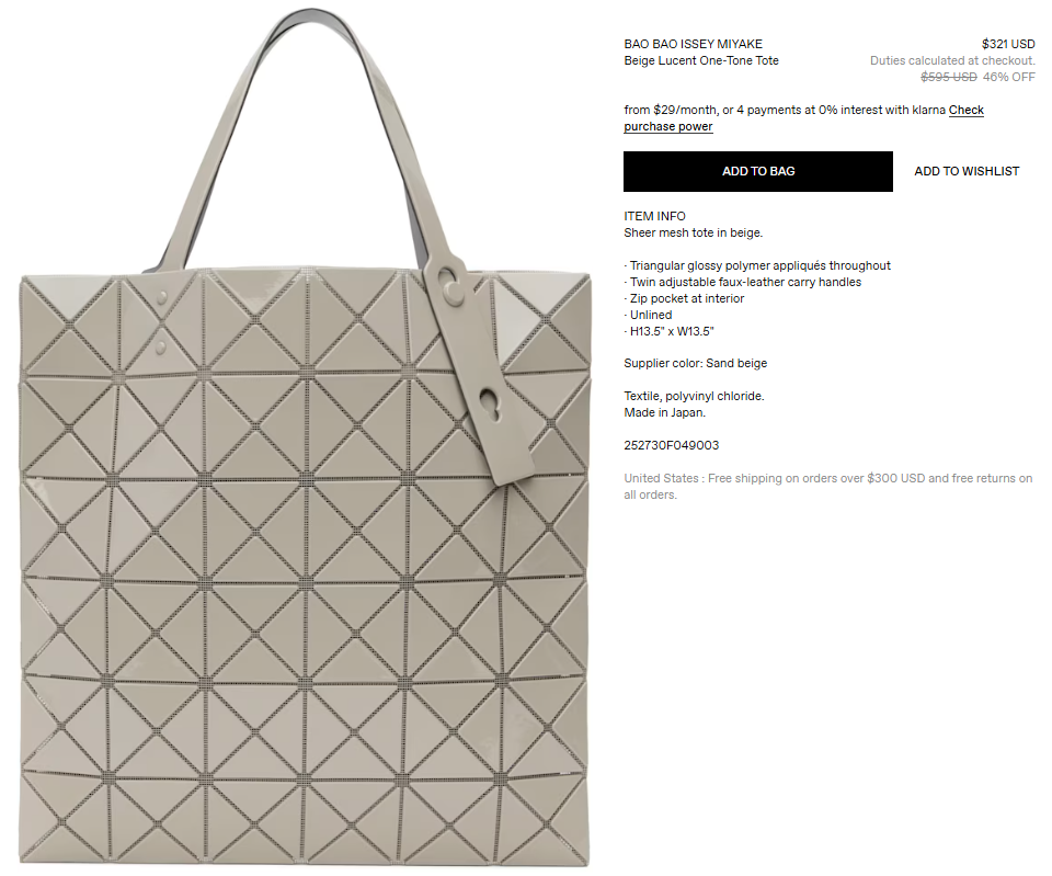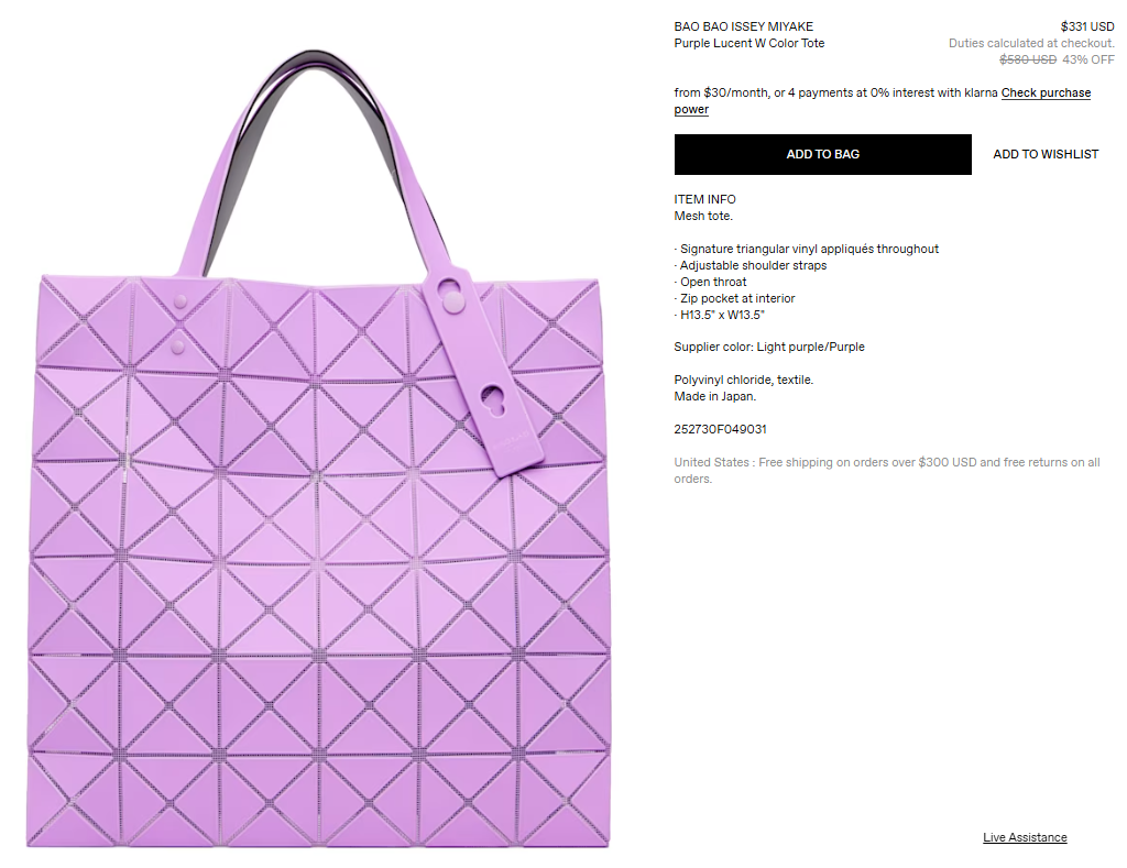 5센스) 바오바오 이세이미야케 루센트 토트백 퍼플 43% 할인 -> $331