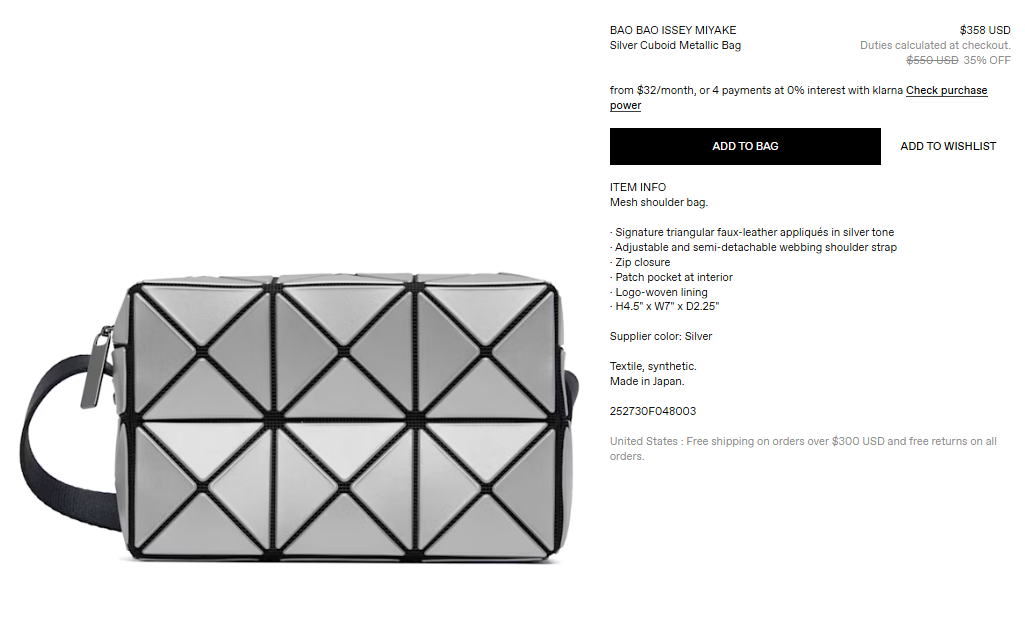 센스에서 바오바오 이세이미야케 제품들이 할인 중입니다.