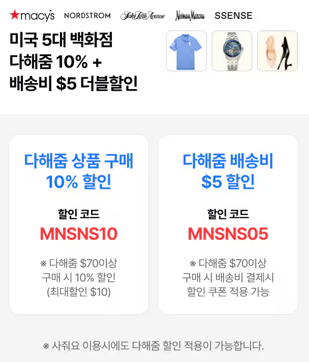 미국에서 직구한 상품에 한하여 일반통관은 $150까지, 목록통관은 $200까지 구매 가능합니다. (초과 시 과세 대상)