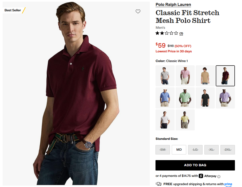 폴로 직구 모음 ZIP 3. 자포스 (메쉬 폴로 셔츠 $59)