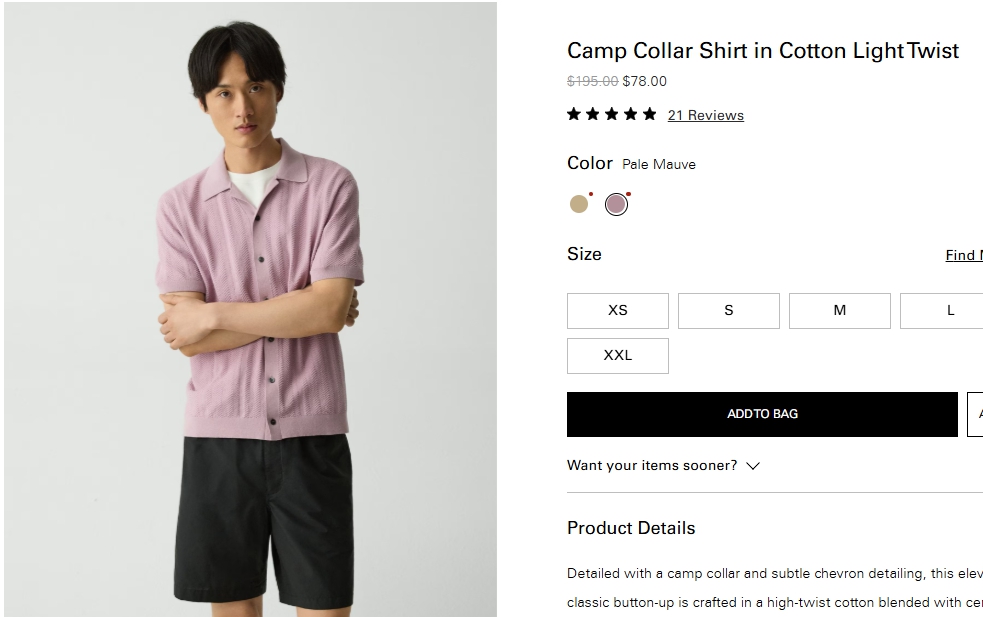 코튼 라이트 트위스트 캠프칼라 셔츠 $78.00