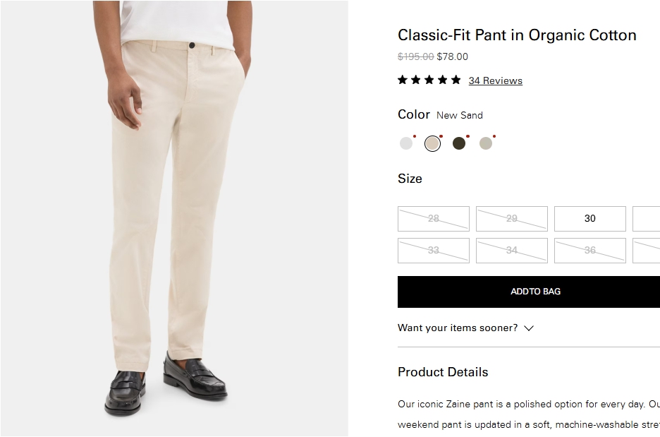 오가닉코튼 클래식핏 팬츠 $78.00
