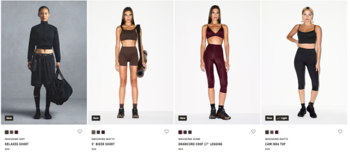 컬렉션은 Matte, Shiny, Airy 세 가지 핵심 라인과 Vintage Seamless, Shiny Nylon 등 네 가지 시즌 라인으로 구성되었으며, 총 58개 제품이 출시되었고, 사이즈는 XXS부터 4X까지 다양하게 제공되어 포용성과 접근성을 강조했어요. 현재 국내 나이키 공식 온라인 스토어에서는 구매가 불가하며, 스킴스 공식 홈페이지와 미국 내 일부 나이키, 스킴스 스토어에서만 만나볼 수 있습니다. 오직 직구를 통해서만 NikeSKIMS 컬렉션을 소장할 수 있어요.