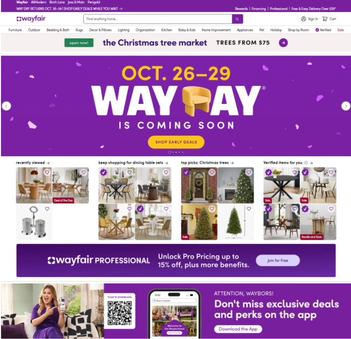 Wayfair는 원래 CSN Stores라는 이름으로 2002년 미국 매사추세츠주 보스턴에서 공동창업자 Niraj Shah와 Steve Conine에 의해 시작되었어요. 초기에는 여러 개의 웹사이트로 가구나 수납가구 등을 판매하며 시작했는데, 사업 규모가 커지면서 2011년 브랜드 통합을 거쳐 Wayfair라는 단일 쇼핑 플랫폼으로 전환되었어요. 이때부터 '집(home)을 위한 모든 것(all things home)’이라는 슬로건 아래, 가구, 인테리어, 주방용품, 데코 오브제 등 다양한 카테고리를 통합하여 제공하기 시작해요.