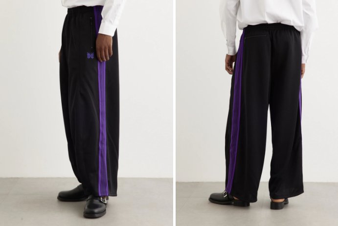 NEEDLES의 대표적인 H.D. Trackpants 시리즈 중 하나로, 퍼플 컬러 버전입니다. 독창적인 실루엣으로 매 시즌 꾸준히 사랑받는 팬츠예요. H.D.는 일본어 hiza-deru에서 유래한 이름으로, 무릎이 살짝 밖으로 나온 듯한 와이드 실루엣을 의미한답니다. 두꺼운 헤비웨이트 저지 원단으로 제작되어 형태감이 잘 살아 있고, 퍼플 컬러가 강렬한 포인트를 만들어 줍니다. 볼륨감 있는 실루엣 덕분에 스트리트 스타일은 물론, 캐주얼한 룩에도 포인트가 되는 팬츠로 활용할 수 있어요.
