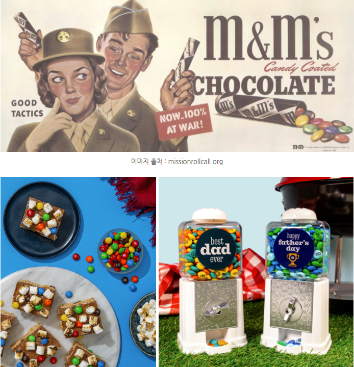 M&M’s는 단순한 초콜릿이 아니라 전쟁 속에서 탄생한 브랜드에요. 1941년 미국 사업가 포레스트 마스(Forrest Mars Sr.)는 전쟁 중 더운 환경에서도 손에 녹지 않고 간편하게 먹을 수 있는 초콜릿을 만들고자 했고, 그 아이디어에서 탄생한 것이 바로 설탕 코팅 초콜릿 M&M’s 이였어요. 겉을 단단한 설탕으로 감싸 초콜릿이 쉽게 녹지 않도록 만든 이 혁신적인 방식은 당시 군인들의 전투 식량으로 채택되며 빠르게 인기를 얻었답니다.