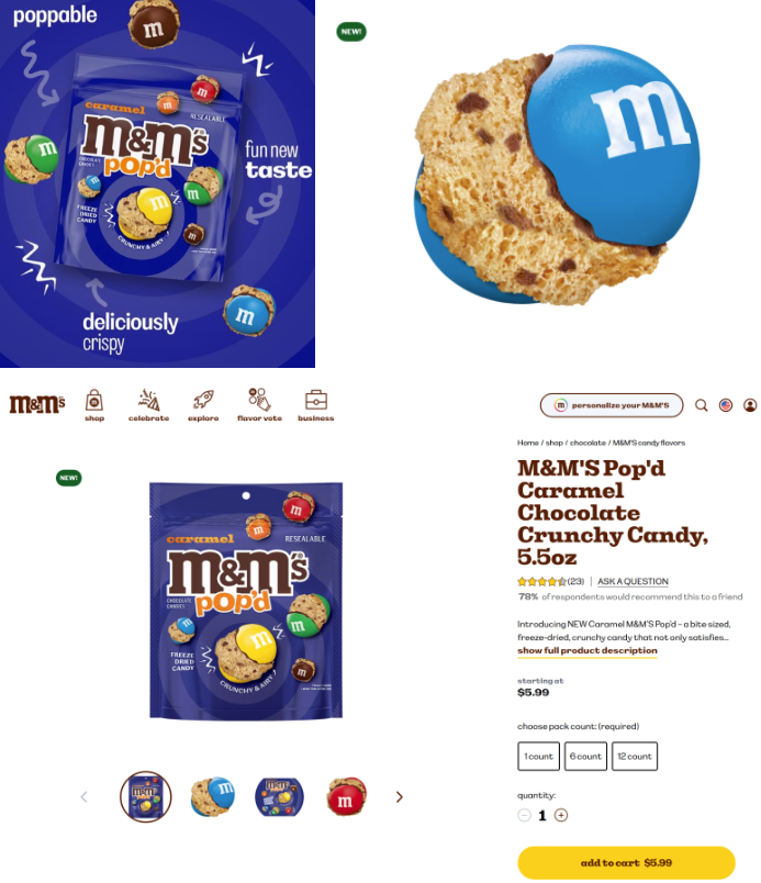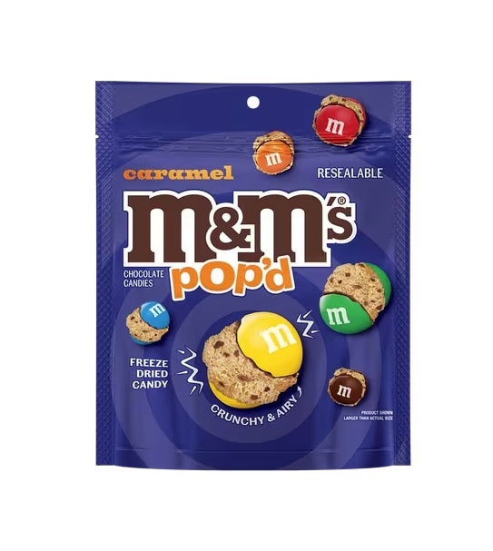 M&M’s POP’d Caramel Chocolate Candy는 브랜드 최초로 선보인 프리즈 드라이 초콜릿으로, 기존의 부드러운 M&M’s와는 전혀 다른 바삭하고 가벼운 식감을 즐길 수 있는 신개념 초콜릿이에요. 달콤한 카라멜과 밀크 초콜릿의 조합에 크런치 한 텍스처가 더해져, 마치 스낵처럼 가볍게 즐길 수 있는 것이 특징이에요. 국내 미출시 신상 제품으로 오직 직구로만 맛볼 수 있어요.