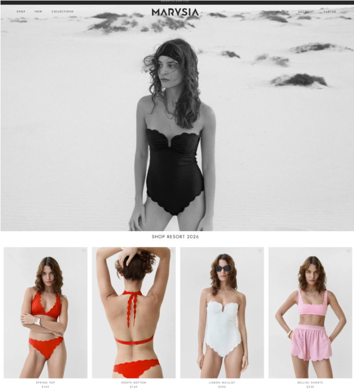 특히 브랜드를 대표하는 물결 모양의 스캘럽(Scallop) 디테일은 메리시아만의 시그니처 디자인으로, 간결하면서도 세련된 실루엣을 완성해 주었고 , 이탈리아 프리미엄 원단과 정교한 제작 공정을 통해 편안한 착용감과 높은 완성도를 동시에 구현하며, 단순한 수영복을 넘어 리조트룩까지 아우르는 라이프스타일 브랜드로 확장되었어요. 현재 메리시아는 전 세계 패션 피플과 셀럽들에게 사랑받으며 여행과 휴양지에서 더욱 돋보이는 프리미엄 스윔웨어 브랜드로 자리매김하고 있답니다.