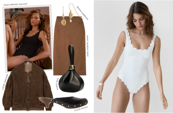 메리시아의 Palm Springs Maillot은 브랜드를 대표하는 클래식 원피스 스윔웨어로, 심플하면서도 세련된 실루엣이 돋보이는 아이템입니다. 깊게 파인 백라인과 스쿱 네크라인이 자연스럽게 바디 라인을 강조해 주며, 메리시아의 시그니처인 스캘럽(물결) 디테일이 넥라인과 힙 라인을 따라 더해져 여성스럽고 우아한 분위기를 완성합니다.